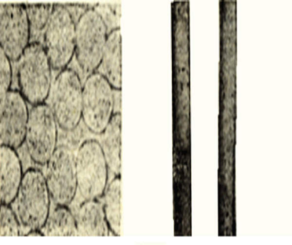 普通的锦纶纤维纵向平直光滑,截面为圆形。