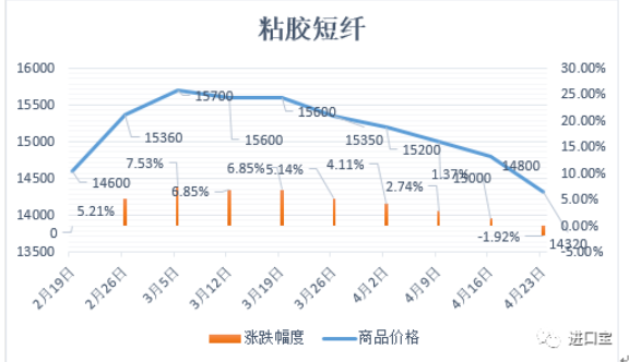 02 棉花 根据进口宝监测,现货皮棉328价格15719元/吨,较上周15567上涨152元/吨,涨幅0.98%。期货2021年9月合约上涨,本周收盘价为15865,较上周15435上涨430,涨幅2.79%。 截至2021年4月22日,新疆地区皮棉累计加工总量577.89万吨,同比增加62.66万吨,增幅12.2%。与上一统计期(截至2021.4.15)相比,本期增量为0.21万吨,本统计期内仅有6个地区加工尚未结束,且每个地区的加工增量均未超过千吨,加工增量最大的为喀什地区为0.08万吨,其次是克州为0.05万吨,其他地区加工量在0.01-0.03万吨之间。上周开始新疆出现局地大风沙尘天气,本周恶劣天气范围扩大,对棉花播种影响较大。 据美国农业部,截至2021年4月15日,美国累计净签约出口2020/21年度棉花359万吨,占年度预期出口量的105%;累计装运棉花250.3万吨,装运率70%。截至15日累计签约出口量较上一年度同期增加1%,累计装运量同比增加10%。其中陆地棉签约量为341.8万吨,装运率70%;皮马棉签约量为17.2万吨,装运率73%。 中纤纤维网认为,由于恶劣天气对棉花生产影响预期,上涨行情还将延续一段时间,下周末至5月初将短暂见顶。 03 粘胶短纤 受五一库存压力,周初起中端工厂阶段性底价14000-14200元出货,昨日起报价逐步恢复至14500元。高端本周新政策尚未出台,前期名义报价15800元,市场贸易商仍有少量低价货源流出14800-15000元/吨。 棉短绒价格维持稳定,成本支撑较强,但需求一般,目前山东长丝绒价格4700-4800元/吨。国内溶解浆产价格平稳,供应偏紧,溶解浆价格在8600-8800元/吨。外盘阔叶溶解浆价格表现坚挺,报在1110-1120美元/吨,外盘针叶浆报价上行,报价在1180-1190美元/吨。 中纤纤维网认为,粘胶短纤走势延续弱势,下游企业基本无备货意向,并且将延长放假时间。 04 涤纶短纤 本周涤纶短纤呈现跌势,周初市场价格尚坚持,但周三在原油再次下跌及国外疫情再次恶化及工厂出货压力下,涤纶短纤市场价格下滑,下游低价采购意向也相对零星,厂家产销处于低位,库存随之增加。而期货主力合约转换,基差方面本周略有走强,周初基差在贴水07合约350-400元/吨后至周末走高至250-300元/吨左右。截止周五,江浙1.4D商谈主流在6700-6800元/吨左右,一单一谈。 原料方面,PTA受持续的去库支撑,背靠成本边际继续跟随原油波动为主,整体体现较强的抗跌性;而MEG因两套大炼化新装置开车进展都皆为顺利,继续被当做空头配置,价格再创新低。 中石化直纺涤短本周指导报价维持,1.4D半光报价在7100元/吨,1.2D有光报价在7900元/吨。 中纤纤维网认为,涤纶短纤市场目前看原料及下游新订单跟进情况,近期略有抗跌性。 05 澳大利亚羊毛拍卖第43周(2021/04/22) 本周澳洲羊毛市场整体表现积极,大部分型号羊毛上涨。值得关注的是,南部17微米和21微米之间的差距达到1024澳分,而上周是927澳分。 本周羊毛供应量比上周再次减少5854包,共计40402包。与去年同期相比总供应量增加79700包(+6.2%)。成交36094,流拍率为10.7%。 以澳元计价的EMI(东部市场价格指数)本周收于1312澳分/公斤(净重),环比上涨1.63%(上涨21澳分)。 以美元计价的EMI(东部市场价格指数)收于1011美分/公斤(净重),环比上涨1.51%(上涨15美分)。 以人民币计价的EMI(东部市场价格指数),收于65.58元/公斤(净重),环比上涨0.75%(上涨0.49元)。 从各类型羊毛涨跌来看,本周涨跌不一。 以下为悉尼、墨尔本、弗里曼特尔三地羊毛拍卖价格详细数据(以澳元计价): 由于细支美利奴型号强势上涨,下周供应量也相应增加,目前预计50821包。 06 棉纱